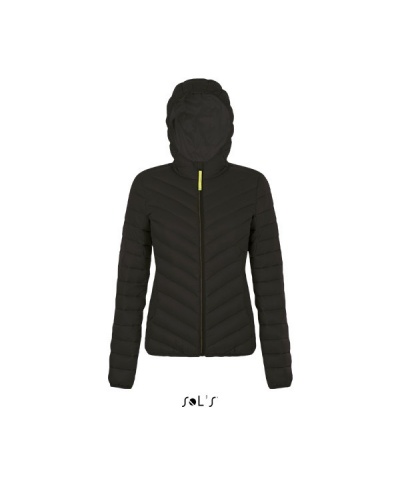 QUALITY: 100% waxed polyamide, lining: 100% polyester 290T, padding: 90% down - 10% feather; Small high collar, 2 front and 2 inside pockets, elasticated hood, bottom and cuffs, "In bag" folding system with stoppers