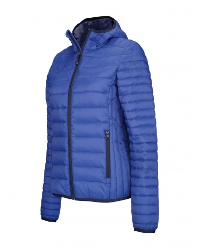 100% polyamide. Polyester lining. Warm and ultra-lightweight. Folds up into storage bag. 2 front zipped pockets. Contrast lining and hood (except for Navy colourway).