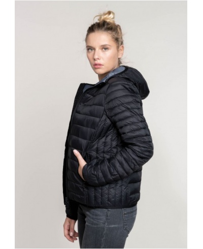 100% polyamide. Polyester lining. Warm and ultra-lightweight. Folds up into storage bag. 2 front zipped pockets. Contrast lining and hood (except for Navy colourway).