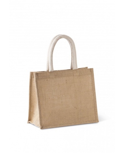 Jute canvas tote shopping bag with cotton handles. Medium size.