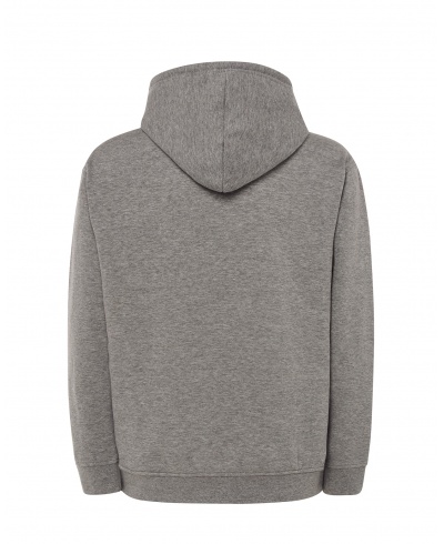 Hooded sweatshirt for men with kangaroo pocket and matching drawstring. Available in 29 colors and from size XS to 3 XL. Because of its higher polyester composition, some of our customers use the white sweatshirt to sublimate.