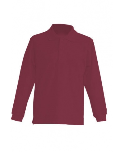 Kids long sleeve polo Unisex with cuffs. Honey combed fabric. Two buttons placket. 1x1 Rib collar and cuffs. Side slits.