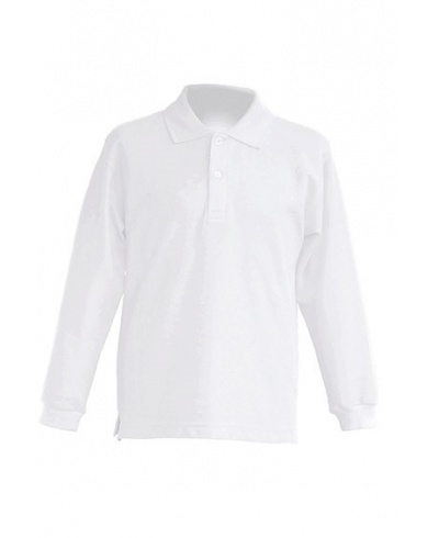 Kids long sleeve polo Unisex with cuffs. Honey combed fabric. Two buttons placket. 1x1 Rib collar and cuffs. Side slits.