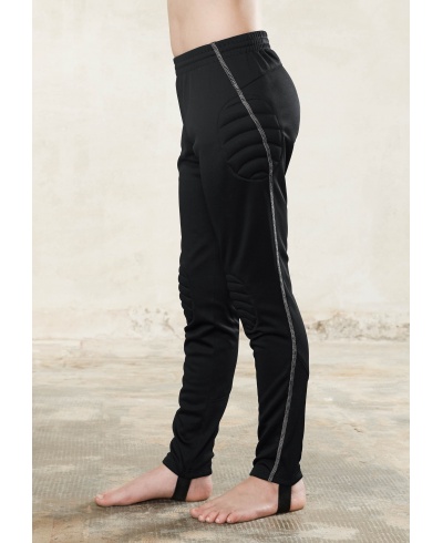 100% polyester. Elasticated waist with drawcord. Protective padding at hips and knees. Ribbed back leg ends. Stirrup at bottom hem for optimal support.