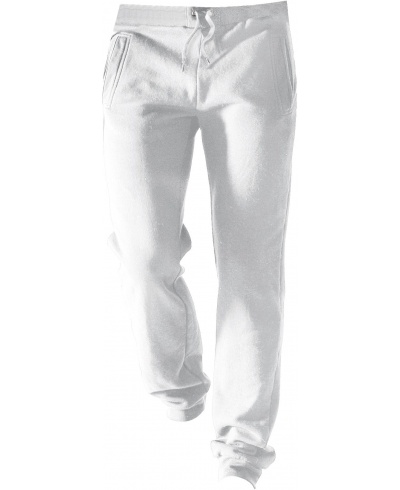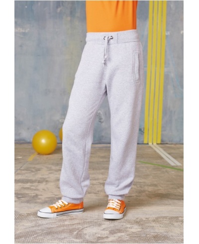 80% combed cotton / 20% polyester. Brushed fleece. 2 side pockets and 1 rear patched pocket. Deep rib elasticated waistband. Ribbed leg ends.