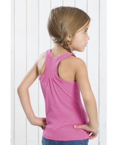 Girls tank top t-shirt swimming design with back pleat.1x1 Rib.