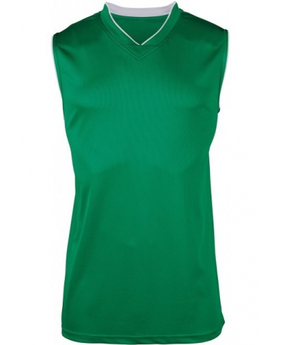 100% polyester. Quick drying fabric. V-neck. Double layer contrast self fabric at neckline and armholes. Twin needle finishing.