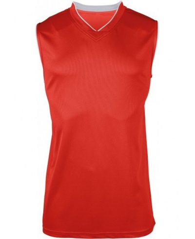 100% polyester. Quick drying fabric. V-neck. Double layer contrast self fabric at neckline and armholes. Twin needle finishing.