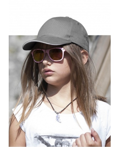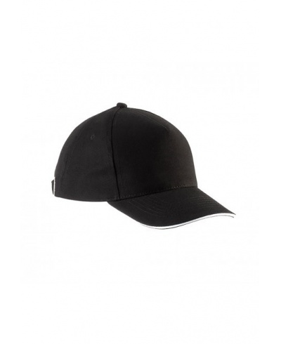 100% brushed cotton twill. 5 panels. Contrasting sandwich peak. Adjustable rear fastening with metal buckle. Head size: 53 cm.