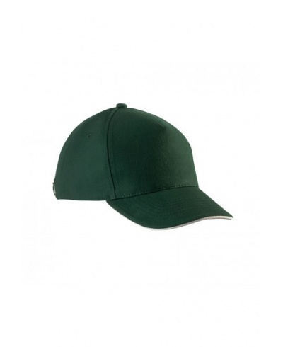 100% brushed cotton twill. 5 panels. Contrasting sandwich peak. Adjustable rear fastening with metal buckle. Head size: 53 cm.