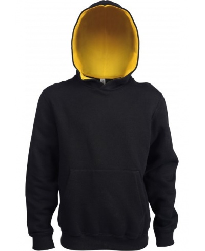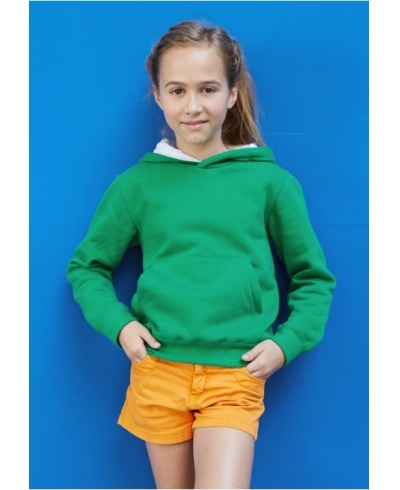 80% combed cotton / 20% polyester. Brushed fleece. Kangaroo pocket with earphones access. Ribbed cuffs and waistband. Lined contrast hood.
