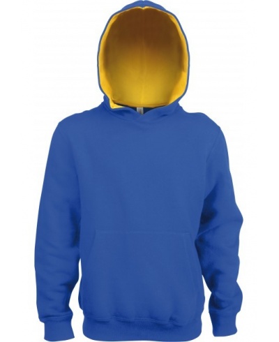 80% combed cotton / 20% polyester. Brushed fleece. Kangaroo pocket with earphones access. Ribbed cuffs and waistband. Lined contrast hood.