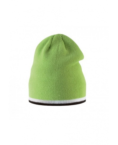 100% acrylic Knitted hat with two-tone contrasting edge strip.