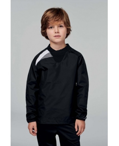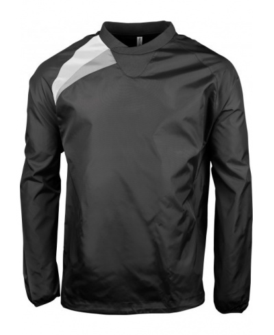 100% Polyamide Oxford with PU coating. Water repellent. Crew neck with 1x1 rib collar and yoke for easy pull-over. Raglan sleeves. Contrast panel details. Elasticated cuffs.
