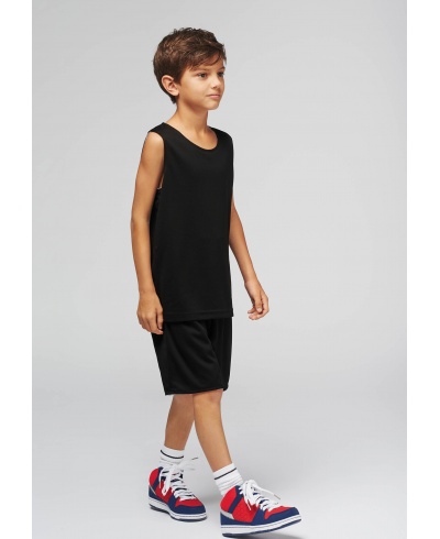 100 % polyester. Quick-drying, lined and reversible fabric. Unisex kit including sleeveless vest and shorts. Vest : reversible, 2 stitched layers of 140 g/m² each. Unfinished hem for easy decoration access. Shorts : reversible, 2 stitched layers of 140 g/m² each. Elasticated waist with drawstring.