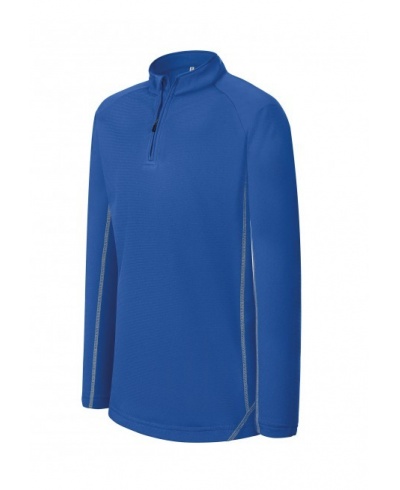 100% polyester poly tricot. Raglan sleeves. Contrast topstitching.