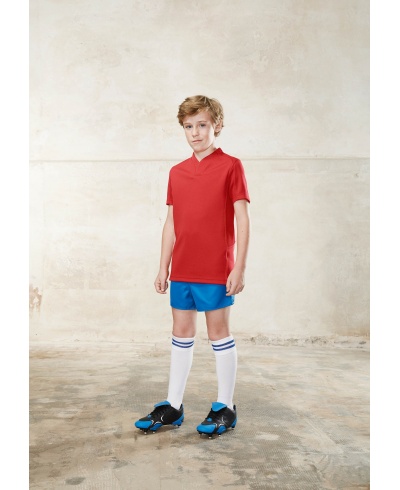 100% polyester interlock and mesh. Matching mesh panels. Open V-neck. Twin needle finishing.Reinforced durable stitching.