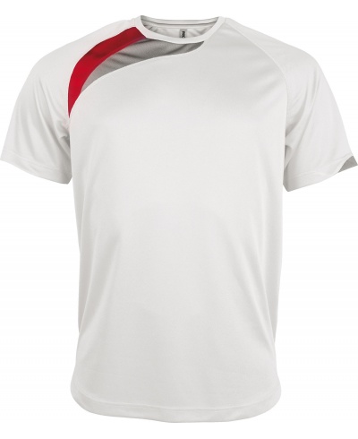 100% polyester. Quick drying fabric. Contrast panels. Matching coverstitch finishing. Twin needle finishing.