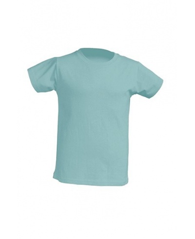 Kids short sleeve T-shirt. Side seams on body. Lycra rib neck. Double stitch on collar, sleeves and bottom. Shoulder to shoulder tape. Grey Melange: 85% cotton / 15% polyester.