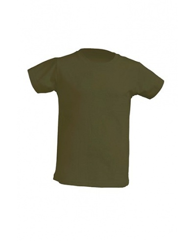 Kids short sleeve T-shirt. Side seams on body. Lycra rib neck. Double stitch on collar, sleeves and bottom. Shoulder to shoulder tape. Grey Melange: 85% cotton / 15% polyester.