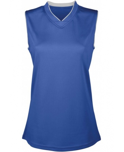 100% polyester. Quick drying fabric. V-neck. Double layer contrast self fabric at neckline and armholes. Twin needle finishing.