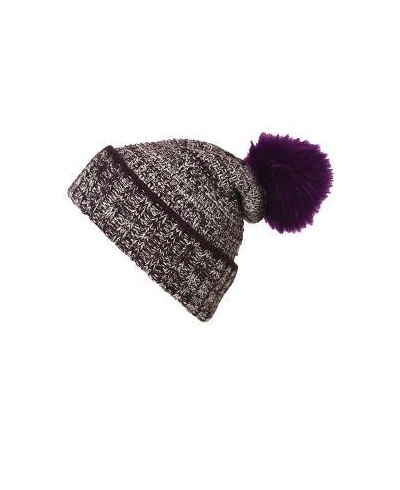 Melange knitted beanie with brim and large pompon