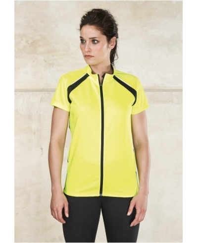 100% polyester. Quick drying fabric. Full front zip. 3 rear pockets. 1 small zipped pocket. Elasticated hem with inner anti slip silicone band. Reflective piping front and back.