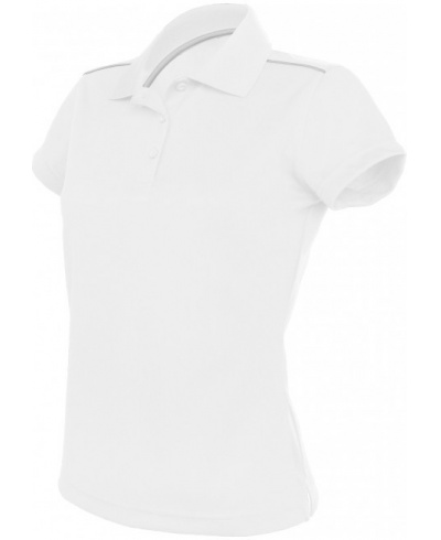 100% polyester interlock. Flat knit collar. 3 button placket. Contrast taped neck and side vents. Contrast piping at shoulder. Twin needle finishing.