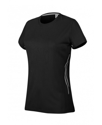 50% polyester Top Cool® / 50 % polyester. Shaped style. Quick drying light weight fabric. Wicking fabric on back for comfort and performance. Front and back reflective design details. Short sleeves with front and back contrast piping. Contrast taped neck.