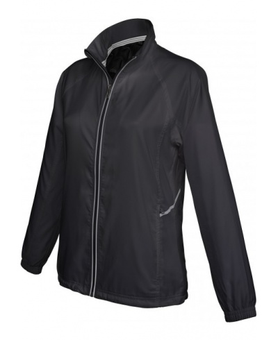 100% Polyester diamond. Quick drying fabric. Fully mesh lined. Zipped front with reflective piping. 2 front zipped pockets. 1 inner pocket. Elasticated cuffs. Adjustable drawcord at hem with toggles. Reflective trims at sides. Zip access for decoration.