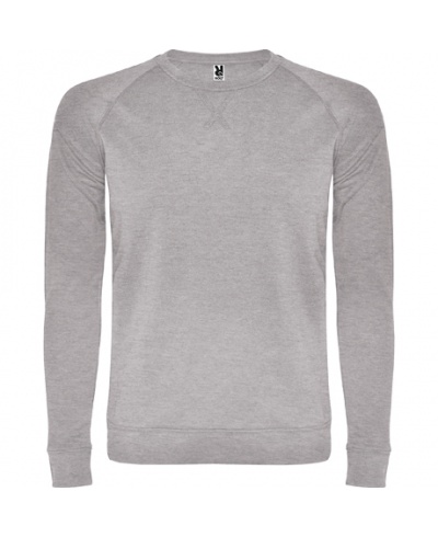 Long sleeve sweatshirt raglan sleeve style, trim, cuffs, hem and collar in 1x1 rib. Round neck with detail of overlocked crossed seams on front and reinforced covered seams in neck.