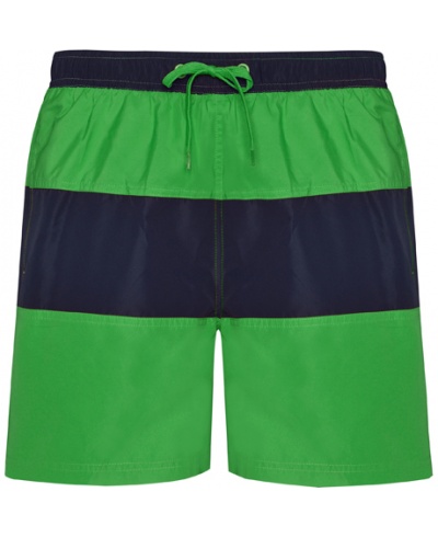 Long swimsuit. Adjustable drawcord in contrast. Side and back pockets with flaps and hidden zipper. Double seams at the tone. Inner lining and mesh lining pockets.