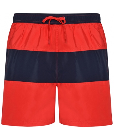 Long swimsuit. Adjustable drawcord in contrast. Side and back pockets with flaps and hidden zipper. Double seams at the tone. Inner lining and mesh lining pockets.