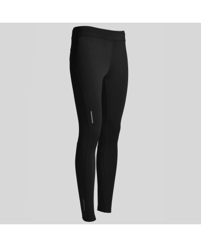 Long technical leggings for women with elastic waistband and inner crossed cord for easy adjustment. Reflective details. Front inner pocket. Elastic and body fitting fabric.