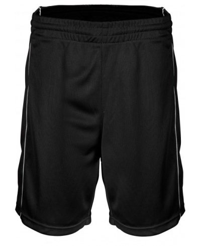 100% polyester. Quick drying fabric. Elasticated waist with drawcord. Contrast piping front and back. Twin needle hem.