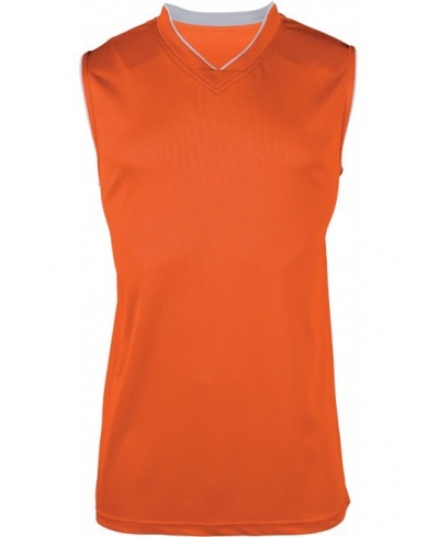 100% polyester. Quick drying fabric. V-neck. Double layer contrast self fabric at neckline and armholes. Twin needle finishing.