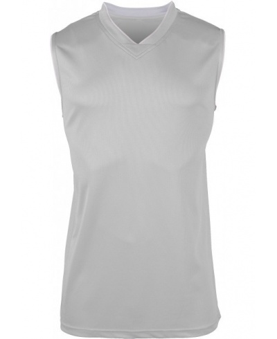 100% polyester. Quick drying fabric. V-neck. Double layer contrast self fabric at neckline and armholes. Twin needle finishing.