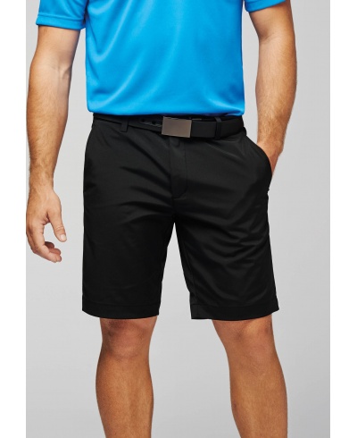 96% polyester / 4% elastane. Water repellent soft fabric to ensure optimal comfort. Slim fit. Belt loops. 2 deep side pockets and 2 back piped pockets with flap.