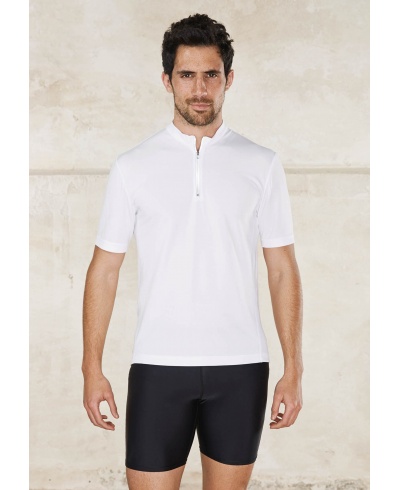 100 % polyester. Quick drying light weight fabric. Mockneck with reflective zip. Drop back hem. Rear pocket with reflective zip and headphone access.