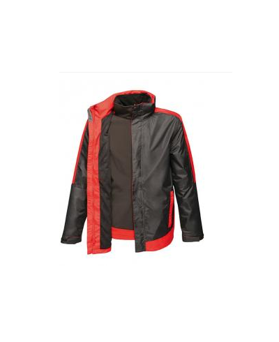 Waterproof and breathable Isotex 10,000 coated fabric with taped seams conforms to EN343 class 3:2; Inner: warm backed woven stretch; Softshell fabric, concealed hood with adjusters, waterproof chest zip pocket and a concealed zip in lining for embroidery access, Softshell inner with 2 lower zipped, pockets