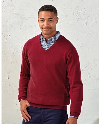 A cotton-rich V-neck men's sweater made with a fine gauge knit for a soft and comfortable feel. Long sleeves with a ribbed knit cuff and hem give a smart contemporary feel.