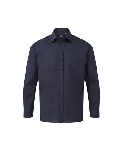 A men’s long sleeve Poplin shirt available in 27 colours. This classic work shirt has a stiffened formal cut collar and a left chest open mitred pocket. The long sleeve style has button fastened cuffs,