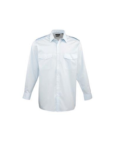 For those who require a more authoritative work uniform, this men's long sleeve Pilot shirt is ideal as it features tabs on the shoulders that can accommodate Epaulettes and also features two Mitred chest pockets.