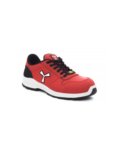 Men's low safety shoe, upper in water-repellent and breathable leather, inner lining (throughout the internal surface), breathable and resistant to abrasion, 6 + 6 metal-free eyelets, pampas grain heel guard with reflective insert, die-cast aluminium tip, Ortholite X40 016 ESD removable arch support, certified anti-puncture reinforced fabric insole, anti-torsion shank, horseshoe-shaped under-toe, ultra-light ESD polyurethane mid-sole, high tenacity and balanced density ESD polyether MASTER BALANCE cushioning, XTRAIL GRIP outsole in ESD TPU with heel and tip guard