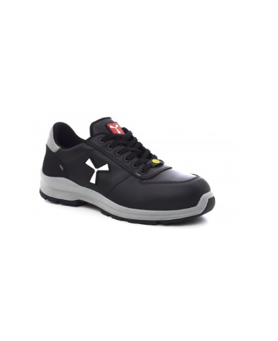 Men's low safety shoe, upper in water-repellent and breathable leather, inner lining (throughout the internal surface), breathable and resistant to abrasion, 6 + 6 metal-free eyelets, pampas grain heel guard with reflective insert, die-cast aluminium tip, Ortholite X40 016 ESD removable arch support, certified anti-puncture reinforced fabric insole, anti-torsion shank, horseshoe-shaped under-toe, ultra-light ESD polyurethane mid-sole, high tenacity and balanced density ESD polyether MASTER BALANCE cushioning, XTRAIL GRIP outsole in ESD TPU with heel and tip guard