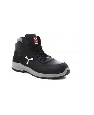 Men's medium safety shoe, upper in water-repellent and breathable leather, inner lining (throughout the internal surface), breathable and resistant to abrasion, 8 + 8 metal-free eyelets, pampas grain heel guard with reflective insert, die-cast aluminium tip, Ortholite X40 016 ESD removable arch support, certified anti-puncture reinforced fabric insole, anti-torsion shank, horseshoe-shaped under-toe, ultra-light ESD polyurethane mid-sole, high tenacity and balanced density ESD polyether MASTER BALANCE cushioning, XTRAIL GRIP outsole in ESD TPU with heel and tip guard