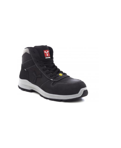 Men's medium safety shoe, upper in water-repellent and breathable leather, inner lining (throughout the internal surface), breathable and resistant to abrasion, 8 + 8 metal-free eyelets, pampas grain heel guard with reflective insert, die-cast aluminium tip, Ortholite X40 016 ESD removable arch support, certified anti-puncture reinforced fabric insole, anti-torsion shank, horseshoe-shaped under-toe, ultra-light ESD polyurethane mid-sole, high tenacity and balanced density ESD polyether MASTER BALANCE cushioning, XTRAIL GRIP outsole in ESD TPU with heel and tip guard
