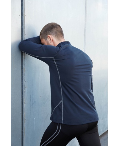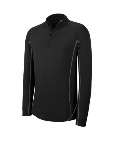 100% polyester poly tricot. Raglan sleeves. Contrast topstitching.