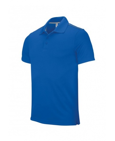 100% polyester interlock. Flat knit collar. 3 button placket. Contrast taped neck and side vents. Contrast piping at shoulder. Twin needle finishing.