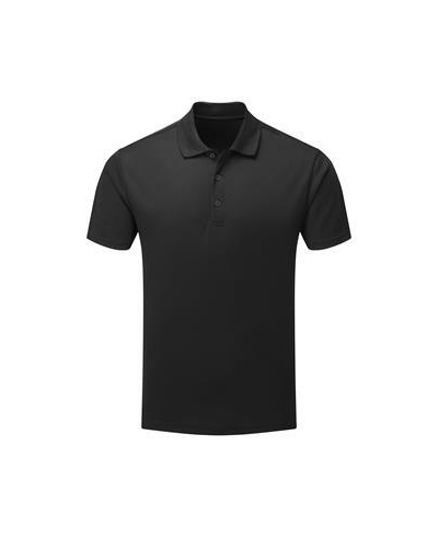 A men's short sleeve polo shirt that is made from recycled polyester with a production method of spun dyeing the yarns. Moisture management properties to the fabric guarantee a breathable and wicking performance, so the wearer stays fresh and cool. Styled with a ribbed collar, three button placket and side vents.
